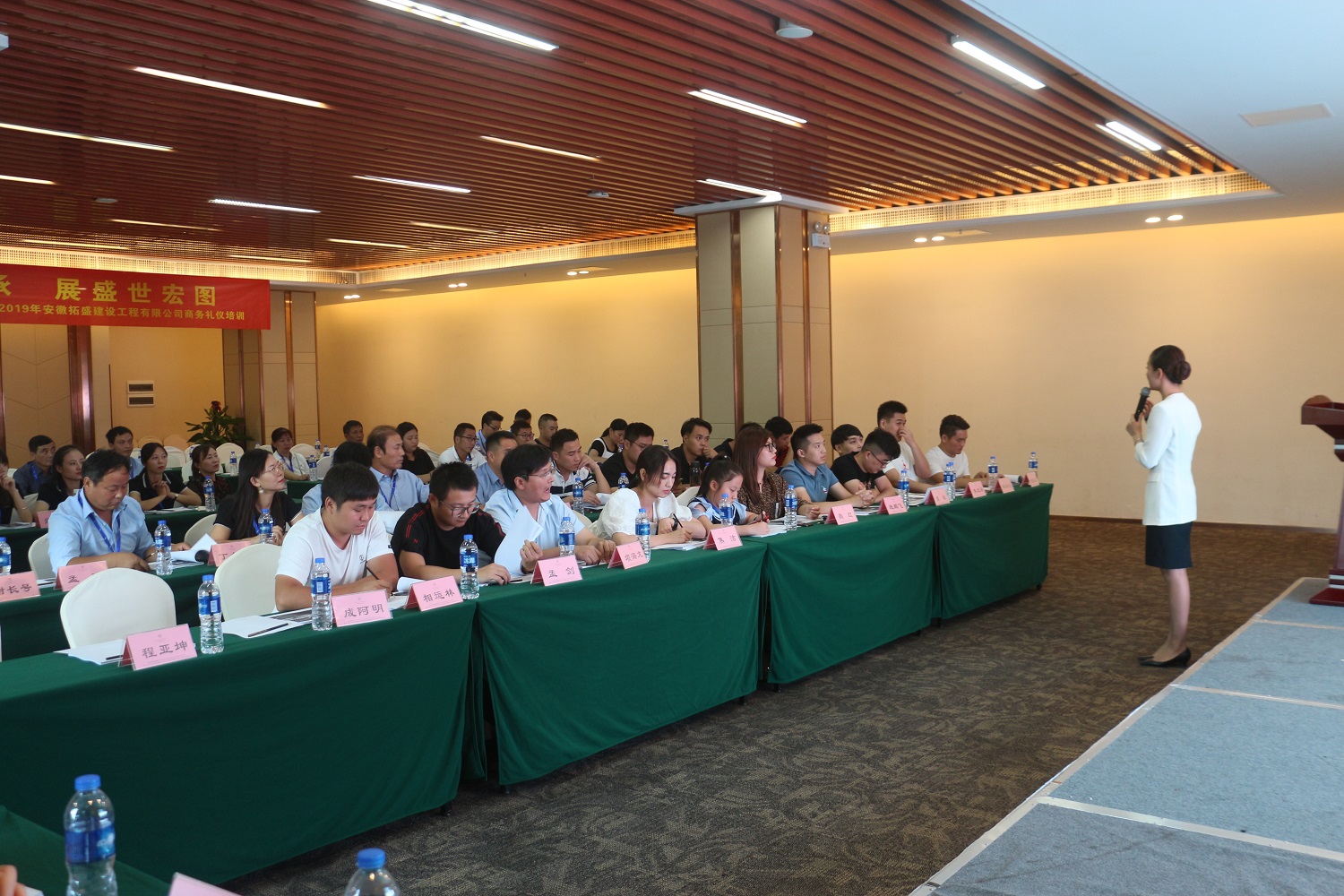董事長帶領員工學習商務禮儀知識
