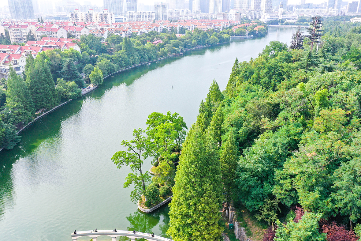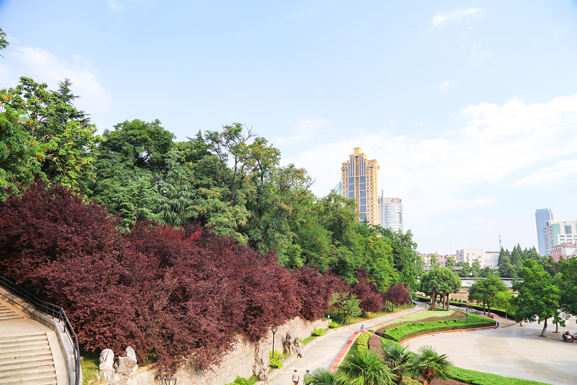 環城公園是一個以原環城綠帶為基礎,采用開敞式布局,運用造園藝術,點綴園林建筑和山石小品形成的線帶狀敞開式公園。它抱舊城于懷,融新城之中,綠樹碧水像一條綠色環帶束于其間,被海內外賓朋譽為"一串鑲嵌著數顆明珠的翡翠項鏈"。